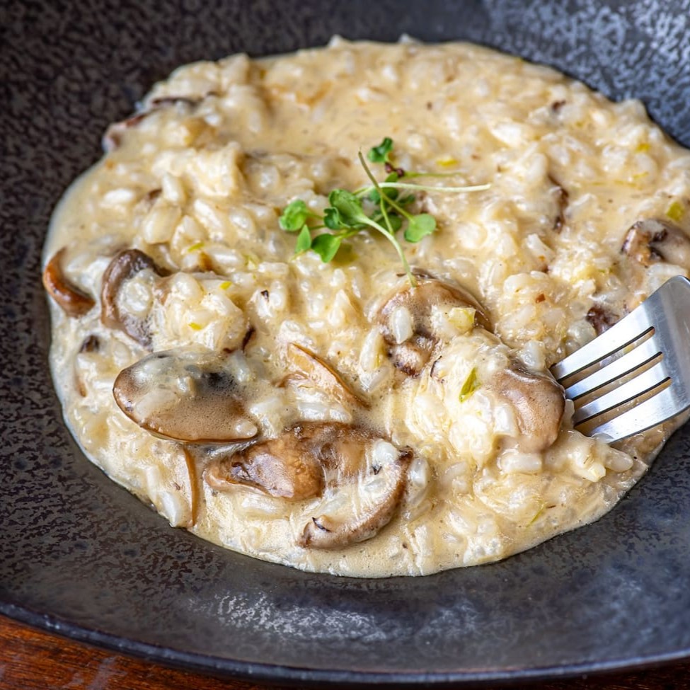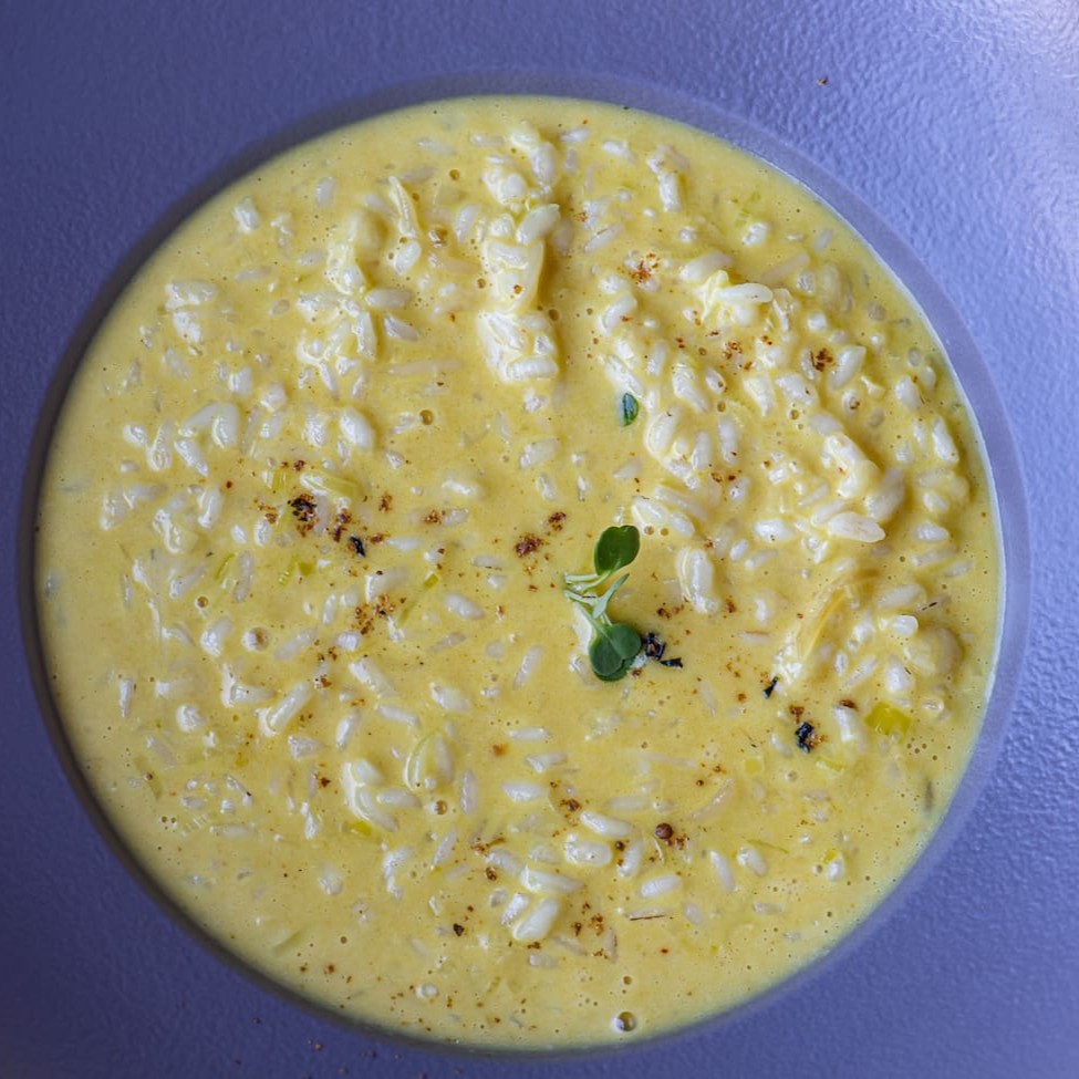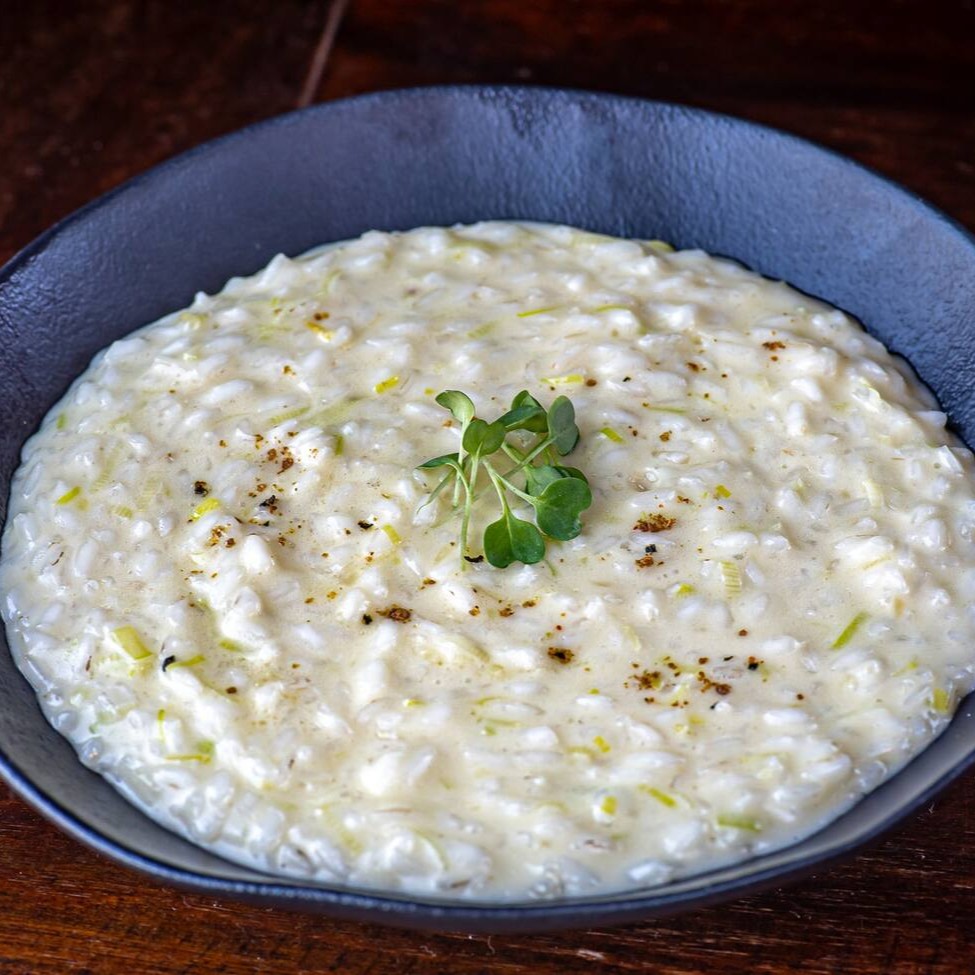 Clássico e perfeito! Arroz carnaroli, vinho branco, caldo de legumes da casa, parmesão grana padano, manteiga e alho poró