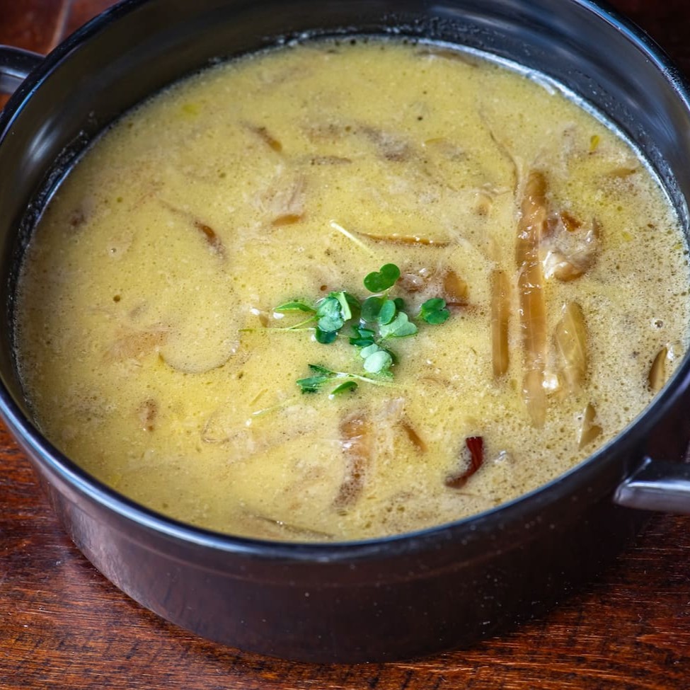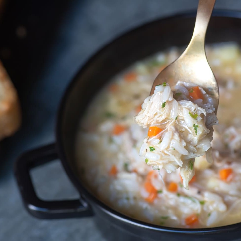 Um abraço reconfortante em forma de sopa, repleta de pedacinhos suculentos de frango e arroz, trazendo memórias de casa e momentos compartilhados ao redor da mesa. Com frango desfiado, arroz, molho de tomate, batata, cenoura, cebolinha, salsinha. Acompanha pão tostado. Volume: 500ml