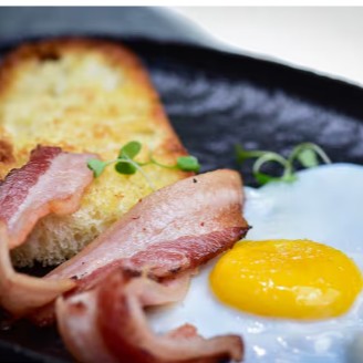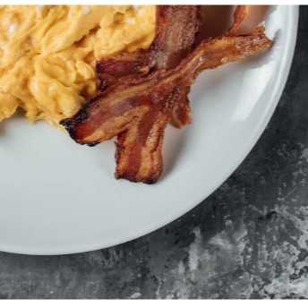 Ovos mexidos super cremosos com o nosso bacon artesanal crocante.