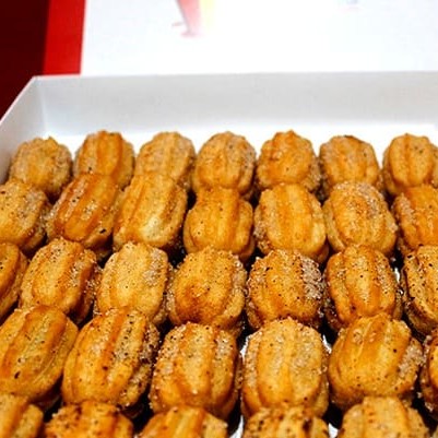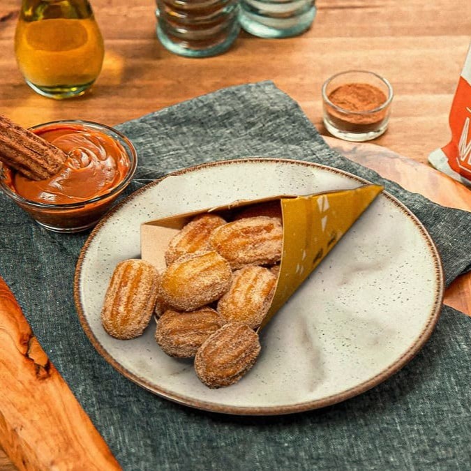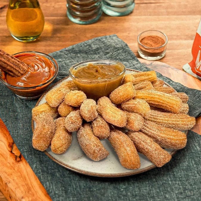 30 deliciosos mini churros de doce de leite de 18 a 20 gramas.