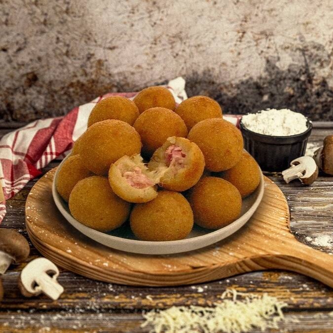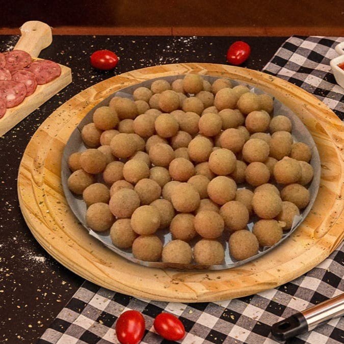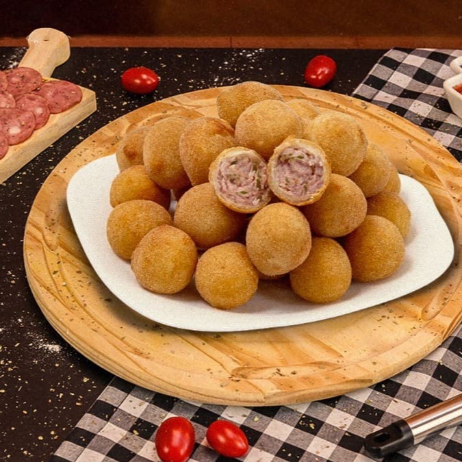 Descubra a deliciosa combinação de 50 unidades de tentadoras bolinhas de pizza, cada uma pesando entre 18 a 20 gramas. Elas são recheadas com o mais suculento queijo, presunto saboroso e uma pitada de orégano para realçar ainda mais o sabor. Essas mini delícias, perfeitas para qualquer ocasião, são uma verdadeira explosão de sabor em cada mordida. Prepare-se para uma experiência culinária inesquecível com nosso 'Meio cento de bolinha de pizza' da categoria 'Mini Salgados'.