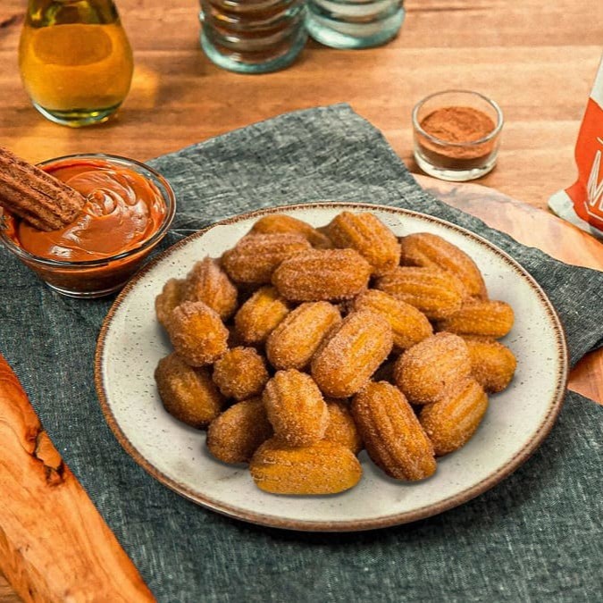Apresentamos 100 mini churros irresistivelmente deliciosos, cada um pesando entre 18 a 20 gramas, o tamanho perfeito para uma mordida. Envolvidos em uma crosta dourada e crocante, esses churros são generosamente recheados com um doce de leite cremoso, que derrete na boca, proporcionando uma experiência gastronômica inigualável. Uma verdadeira explosão de sabor que promete conquistar todos os paladares! Ideal para compartilhar em festas ou eventos. O nosso compromisso é com o sabor e a qualidade, para que cada mordida seja um momento de prazer.