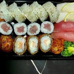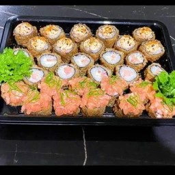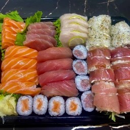 Nosso combinado acompanha 4un Hossomaki de atum 4un de Hossomaki de salmao 10un de Uramaki tuna crispy especial 4 uramaki filadélfia 4un sashimi de salmão 4un sashimi de atum 4un sashimi tilápia com limão 4un niguiri de salmão 4un niguiri de a