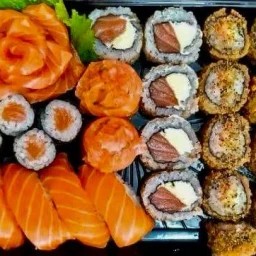 10 Un Uramaki Romeu e Julieta. 5 Un Sashimi de Salmão. 5 Un Sashimi de Tilápia. 5 Un Uramaki filadélfia. 5 Un Hot filadélfia. 4 Un Hossomaki de Salmão. 4 Un Niguiri de salmão. 4 Un Niguiri de tilápia. 4 Un Niguiri skin.