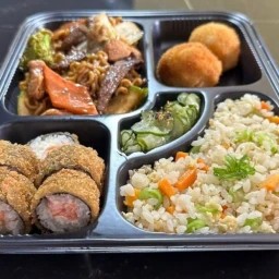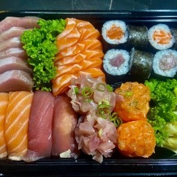 1 Yakissoba Misto 1,2 kg. 10 Fatias de Sashimi de Salmão. 10 Un Uramaki Salmão Grelhado. 10 Un Uramaki Califórnia. 10 Un Uramaki Filadélfia. 10 Un Uramaki de kani filadélfia. 10 Un Hot Filadélfia. 10 Un Uramaki kani 4 Un de Bolinho de Salmão. 4 Un de
