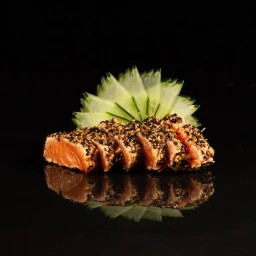 Tarê, cream cheese, skin grelhado e gergelim.