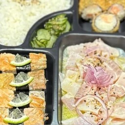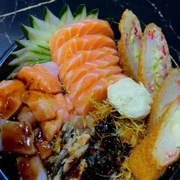Nosso Combinado de Sushi e Sashimi 10 Fatias de Sashimi de Salmão.10 Un Uramaki de Salmão Grelhado.10 Un Uramaki kani.10 Un Uramaki Califórnia. 10 Un Uramaki Filadélfia.10 Un Hot Filadélfia.10 Un Uramaki Skin.