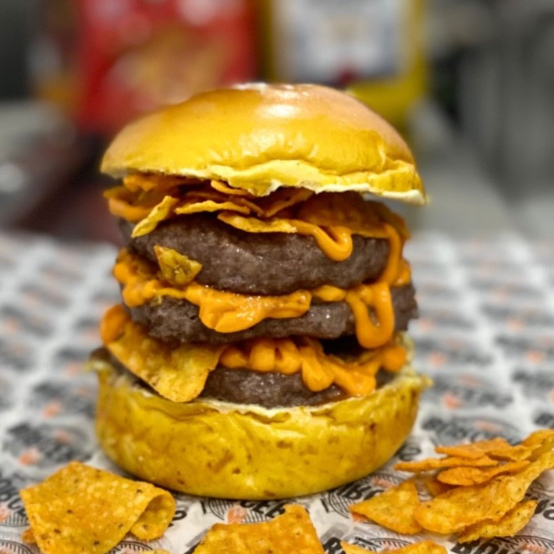 TRIPLO MEXICAN 🌶️🔥 Três burgers suculentos, muito molho cremoso e crocância mexicana que explode no sabor 🤤 É grande, é intenso, é pra quem não tem medo de comer bem!
