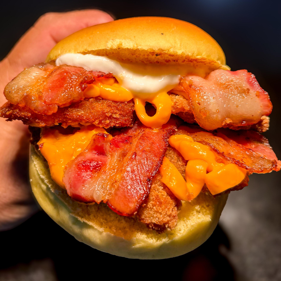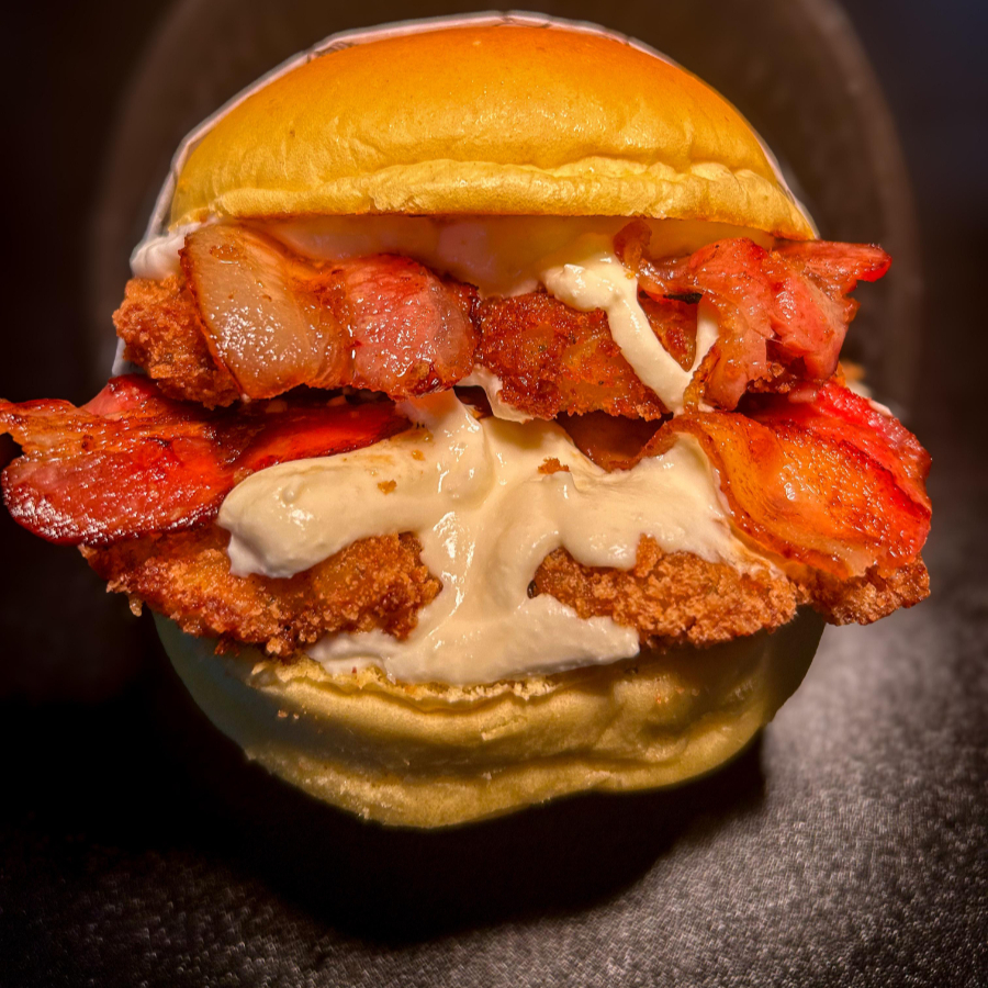 PÃO, 2X BURGUER DE 160GR, 2X QUEIJO CHEDDAR, 2X BACON E MAIONESE DA CASA