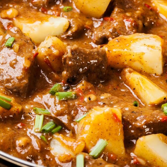 Arroz, feijao, farofa, fritas e carne de panela ( cortes bovinos com legumes ( 800g )