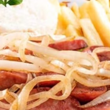 Arroz, feijao, farofa, fritas e calabresa acebolada ( 200g )