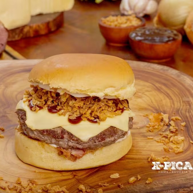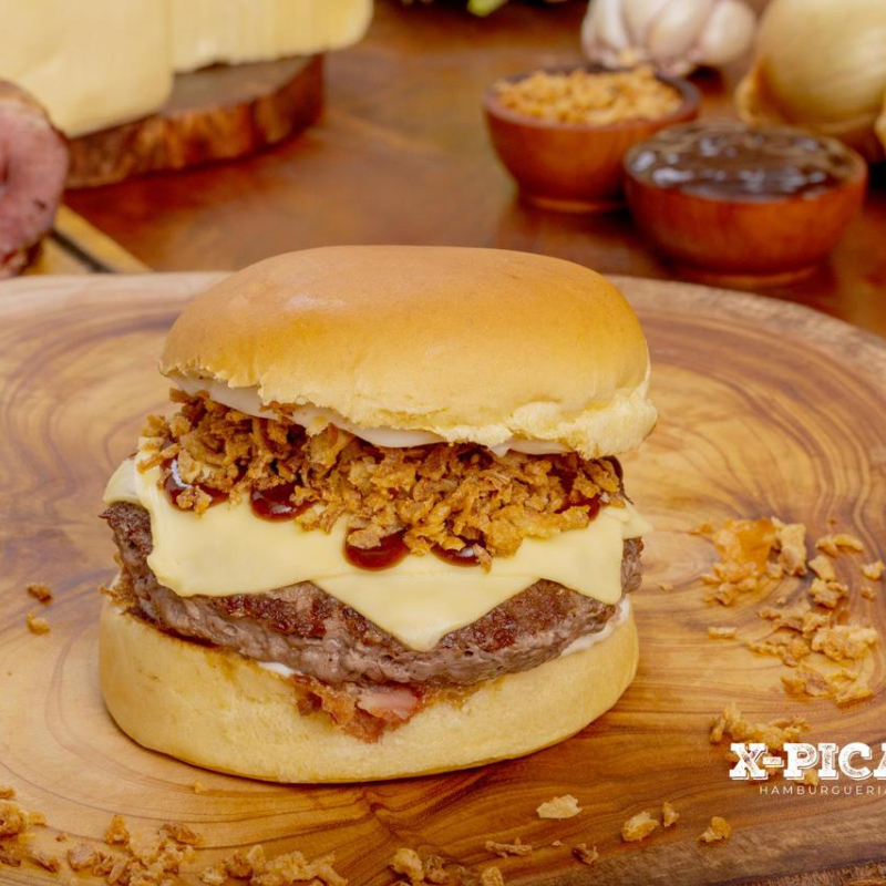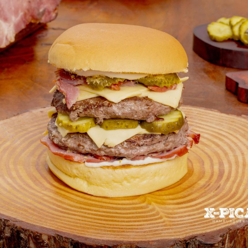 Nosso maravilhoso blend de alcatra angus de dar água na boca, como já sabem a ideia do smash são carnes mais finas, mas aqui no x picanha nos dobramos essa proposta!!! São duas carnes de 100g ao ponto coberto por queijo fatiado, nosso bacon fatiado, picles e por último, damos aquela molhada com nosso molho da casa a base de maionese artesanal de alho.