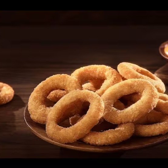 300g ( em media 25 unidades ) de aneis de cebolas empanadas
