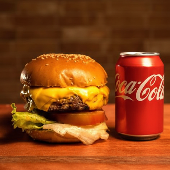 Delicie-se com o nosso Combo Coca Cola, que apresenta uma combinação perfeita de sabor e refrescância. Ele inclui um X-Burguer artesanal, cuidadosamente preparado com ingredientes de alta qualidade e cheio de sabor, e melhor ainda, é acompanhado por uma lata de Coca-Cola de 350ml, geladinha e borbulhante. Este combo é a escolha ideal para quem busca uma refeição completa, satisfatória e extremamente saborosa!