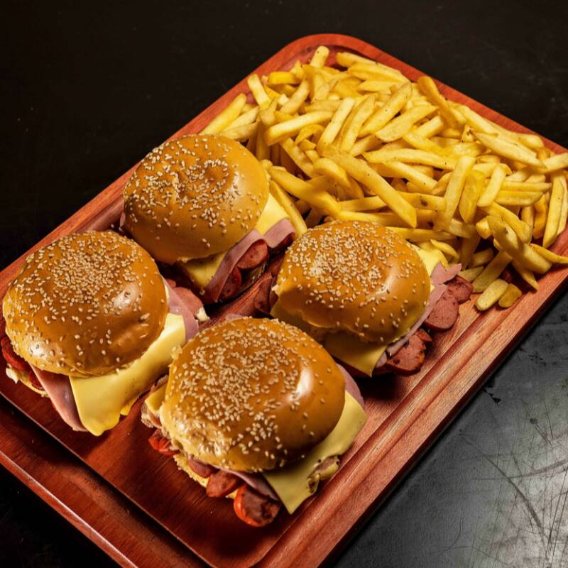 Este combo contem 4 x dog simples ( pao , maionese, salsicha e queijo) mais 500g de fritas