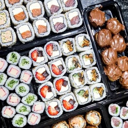 Sushi frito doce, com goiabada e cream cheese, empanado em farinha especial. Finalizado com leite condensado e coco ralado.