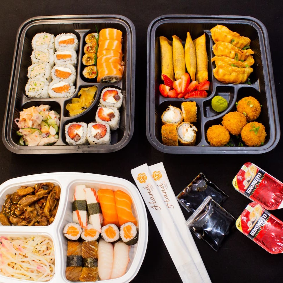 Acompanha gengibre, wasabi, shoyu e hashi.