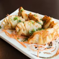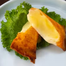 Recheio frito (Hot com salmão e cream cheese, empanado e frito). Acompanha tarê.