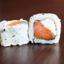 4 unidades - recheado com cream cheese, salmão batido com maionese e cebolinha em cima