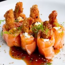 2 unidades - Sem arroz, enrolado no salmão, cream cheese com um camarão empanado, finalizado com molho de ostras.