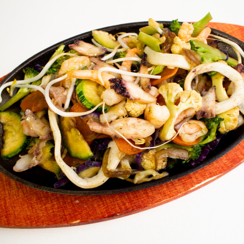 600g - Macarrão tradicional frito, brócolis, couve flor, cenoura, abobrinha, repolho e cebola com molho da casa.