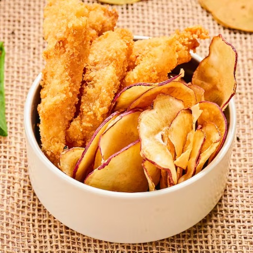 Um clássico com um toque de sabor tropical! Tilápia fritinha e crocante, acompanhada de chips de batata doce super crocantes. Um prato simples, mas cheio de sabor.