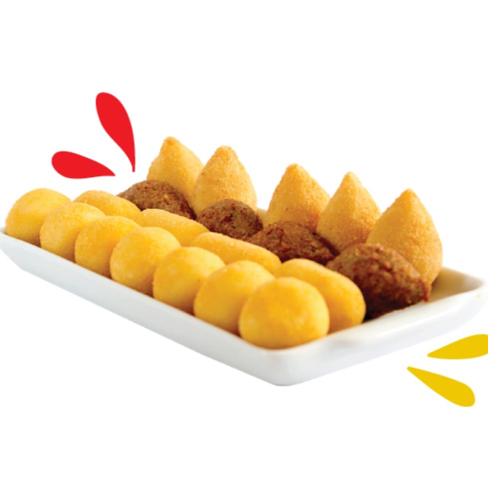 40 Mini Salgados + 10 Brigadeiro + 1 Refrigerante 2lt