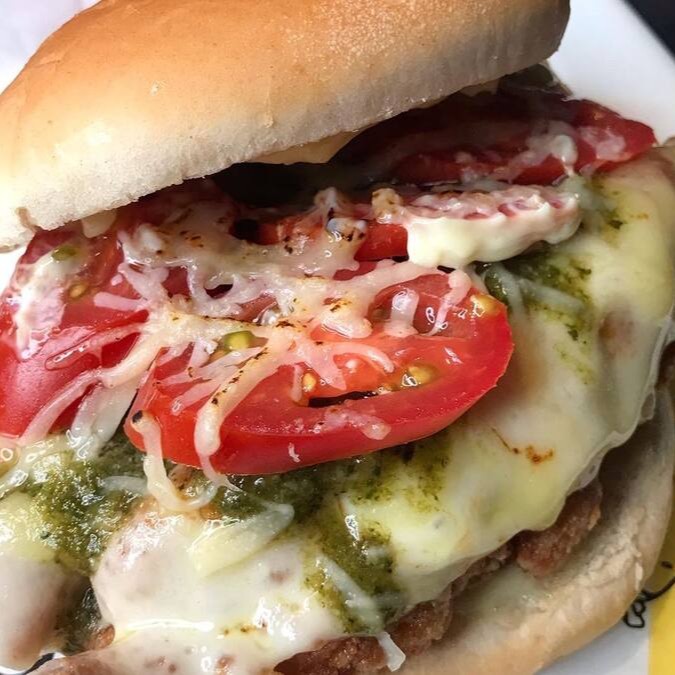 Burger suculento de 150g, coberto com Molho Sugo do Herys, queijo mussarela , tomate cereja fresco e finalizado com um delicioso molho pesto de manjericão, e queijo Crocante pra dar um toque especial.