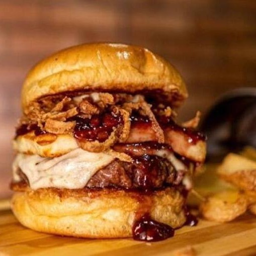 Um generoso hambúrguer de 180g de carne suculenta, coberto com queijo coalho grelhado, uma deliciosa geleia de frutas vermelhas e fatias de bacon crocante. Complementado por cebola crocante, maionese caseira e servido em um macio pão brioche.