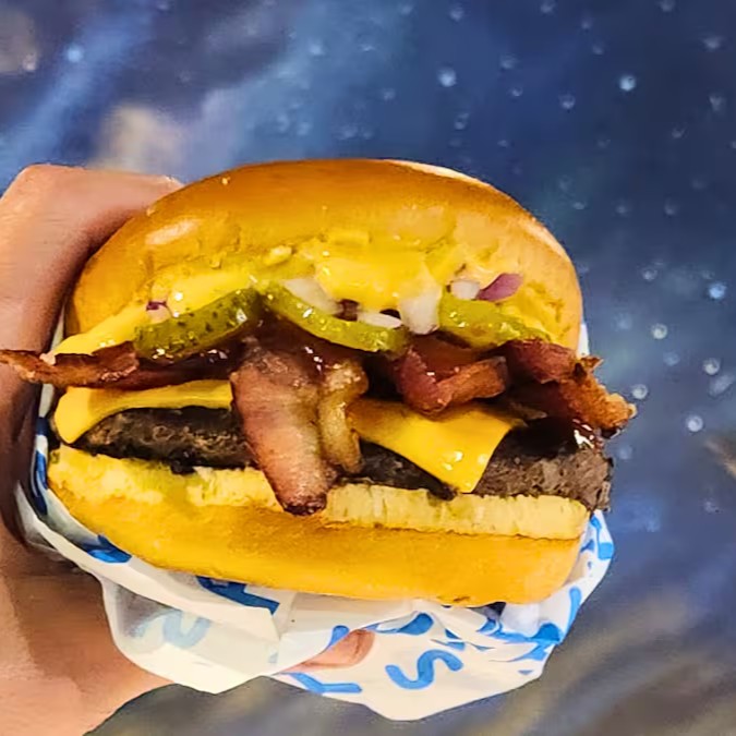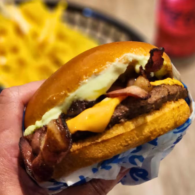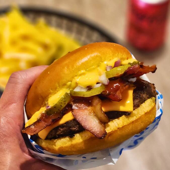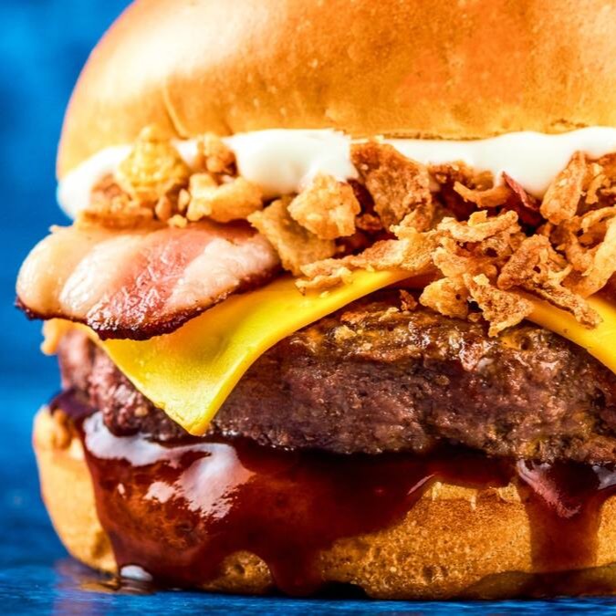 O sabor de churrasco de domingo! Composição elaborada cuidadosamente para ativar as memórias daqueles momentos especiais com família e amigos.Pão brioche selado na manteiga, Blend bovino da casa (burger 160g in natura), Queijo cheddar fatiado, DOBRO de Bacon crocante fatiado, Cebola Crispy, Molho Barbecue e deliciosa maionese defumada.