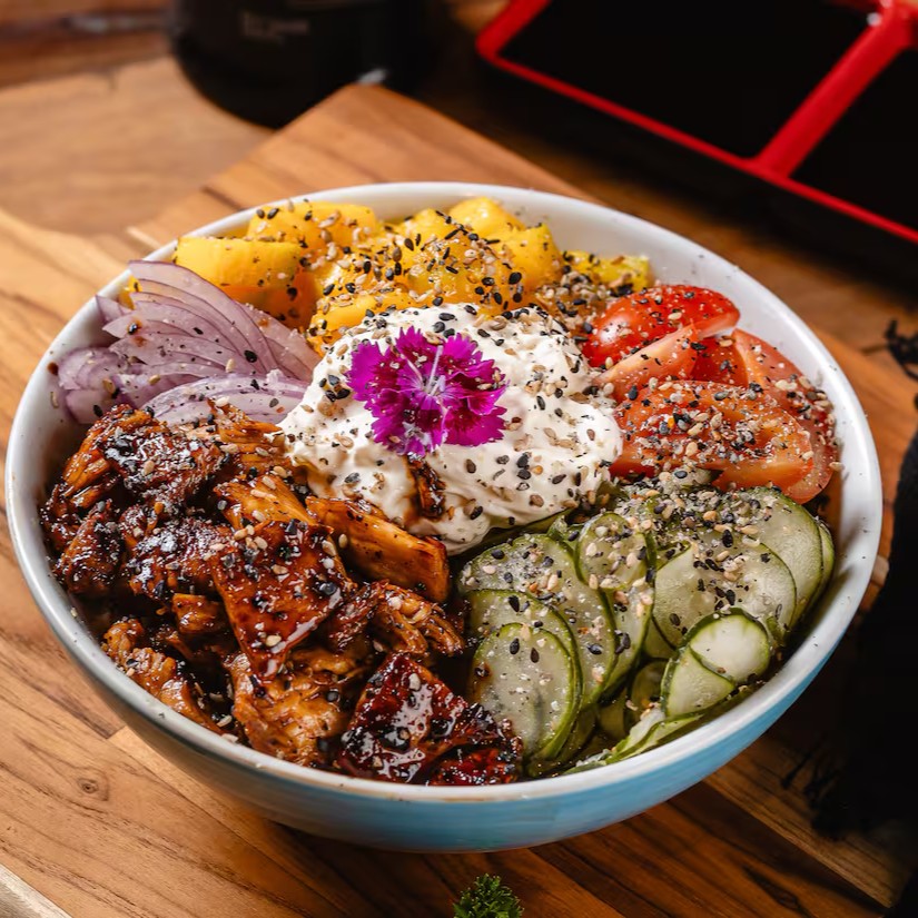 Cubos de frango com teriaki ,arroz ,manga e tomate .#Hikarisushi #Buffethikari #Hikaricuritiba #Sushinobacacheri #Hikariexperience