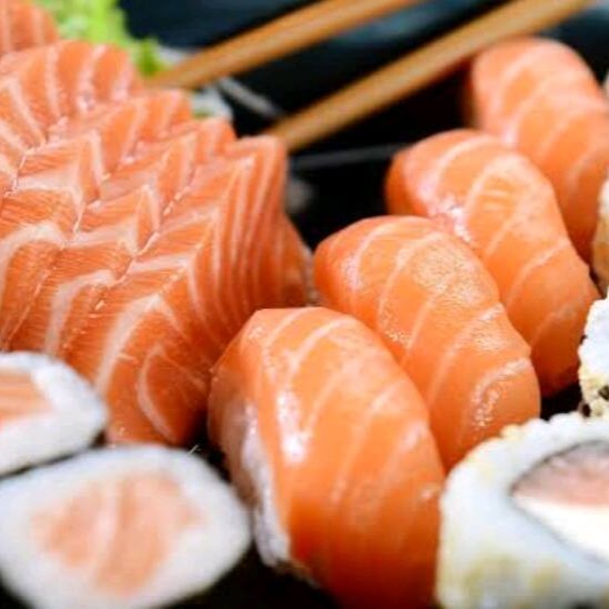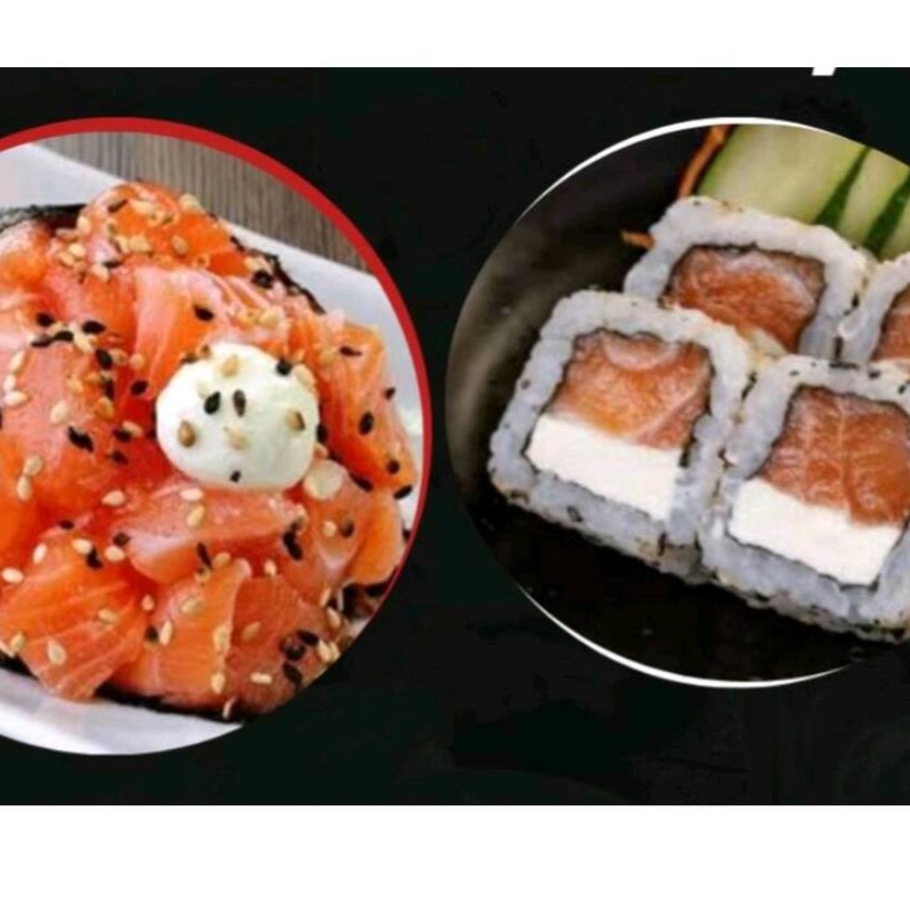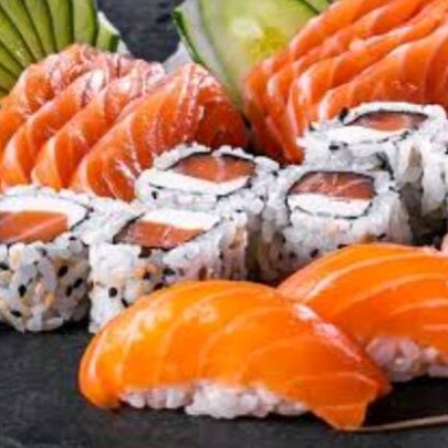 5 Sashimi de salmão 2 niguiri de salmão 8 hossomaki de salmão 8 huramaki de salmão Filadélfia 8 Hot Filadélfia