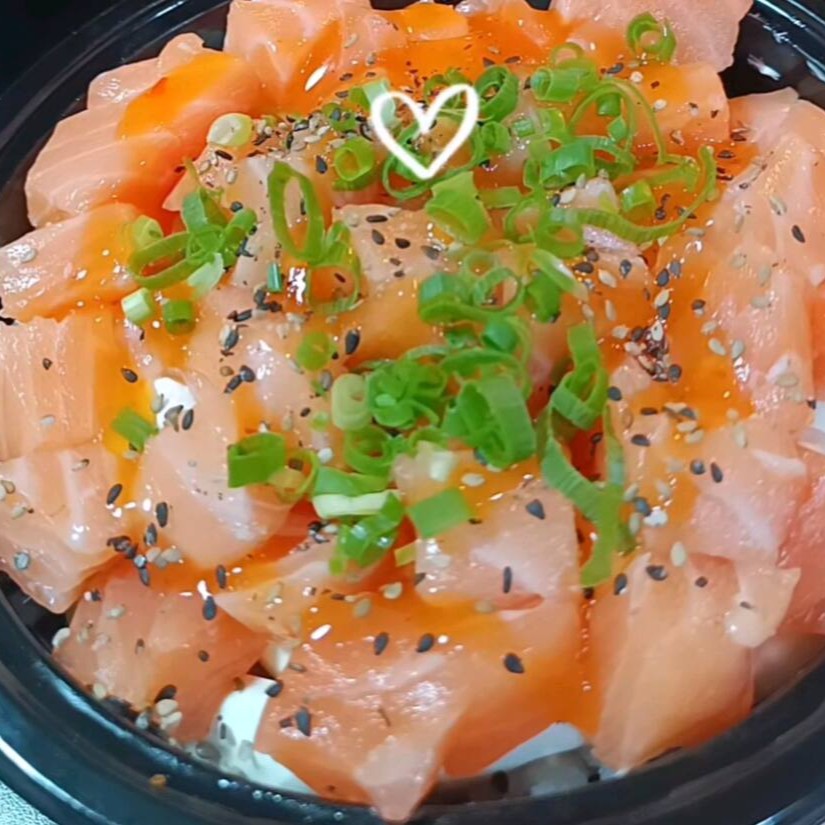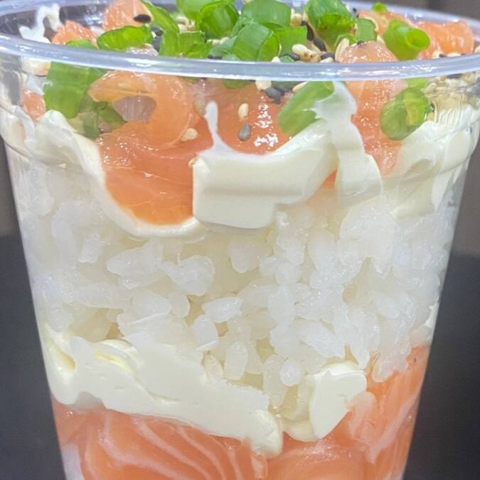 Arroz, salmão , cream cheese,geleia de pimenta e cebolinha.