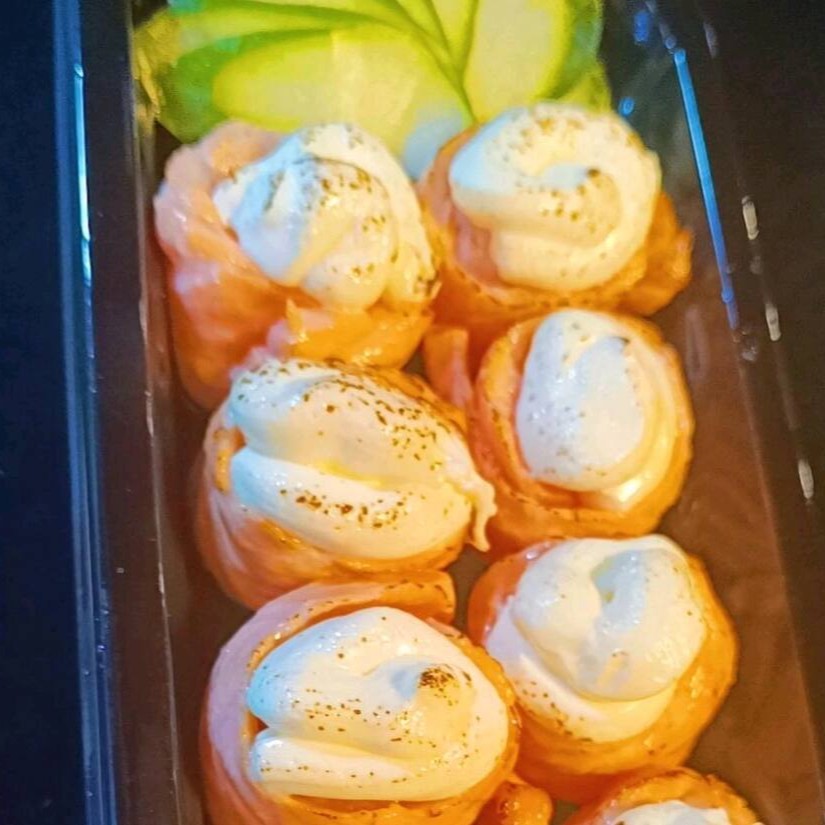 2 unidades de rolinho primavera recheado com Salmão e cream cheese.