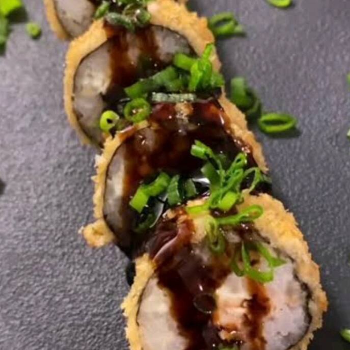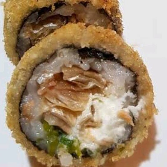 Temaki de pate d salmão com cream cheese empanado na farinha Panko.