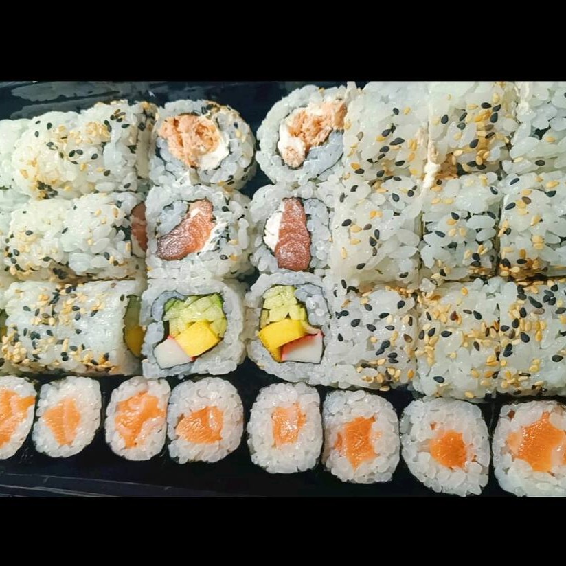 10 huramaki de Patê de salmão 10 huramaki Califórnia 10 Hossomaki de salmão 10 hot Filadélfia 5 baterá de pate de salmão 5 baterá de salmão.