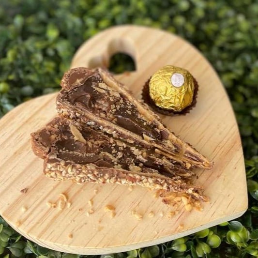 Massa de Ninho, recheado com Creme Crocante de Ovomaltine. A loja não altera, adiciona ou retira ingredientes de nenhum produto. Produto artesanal, de consumo imediato.