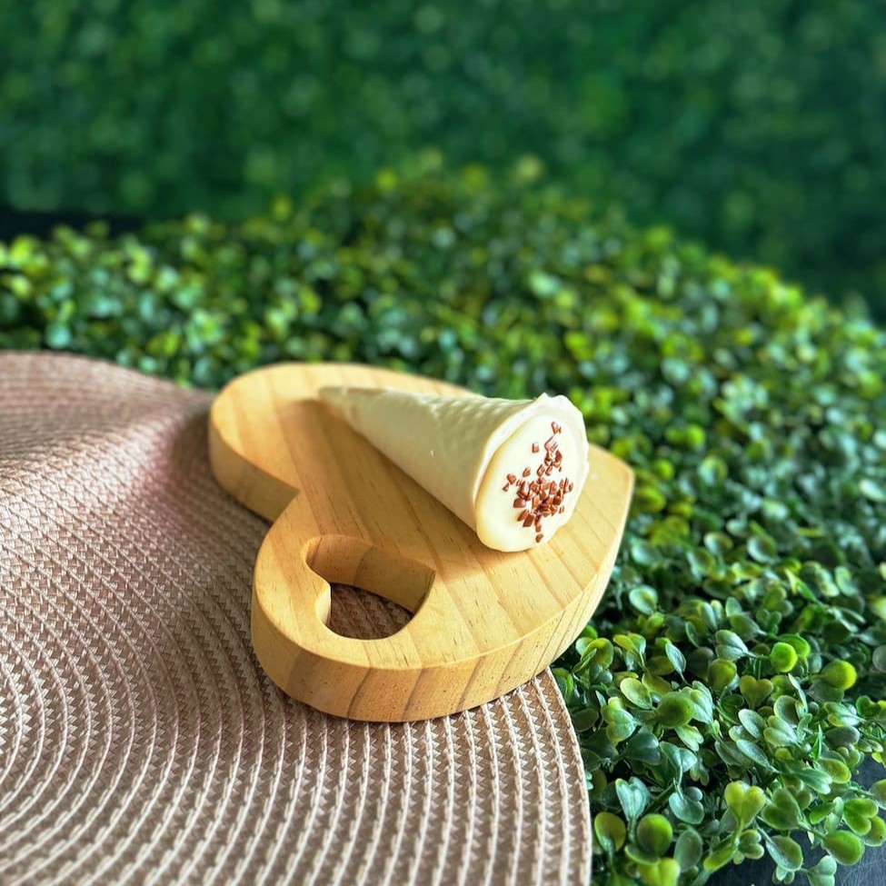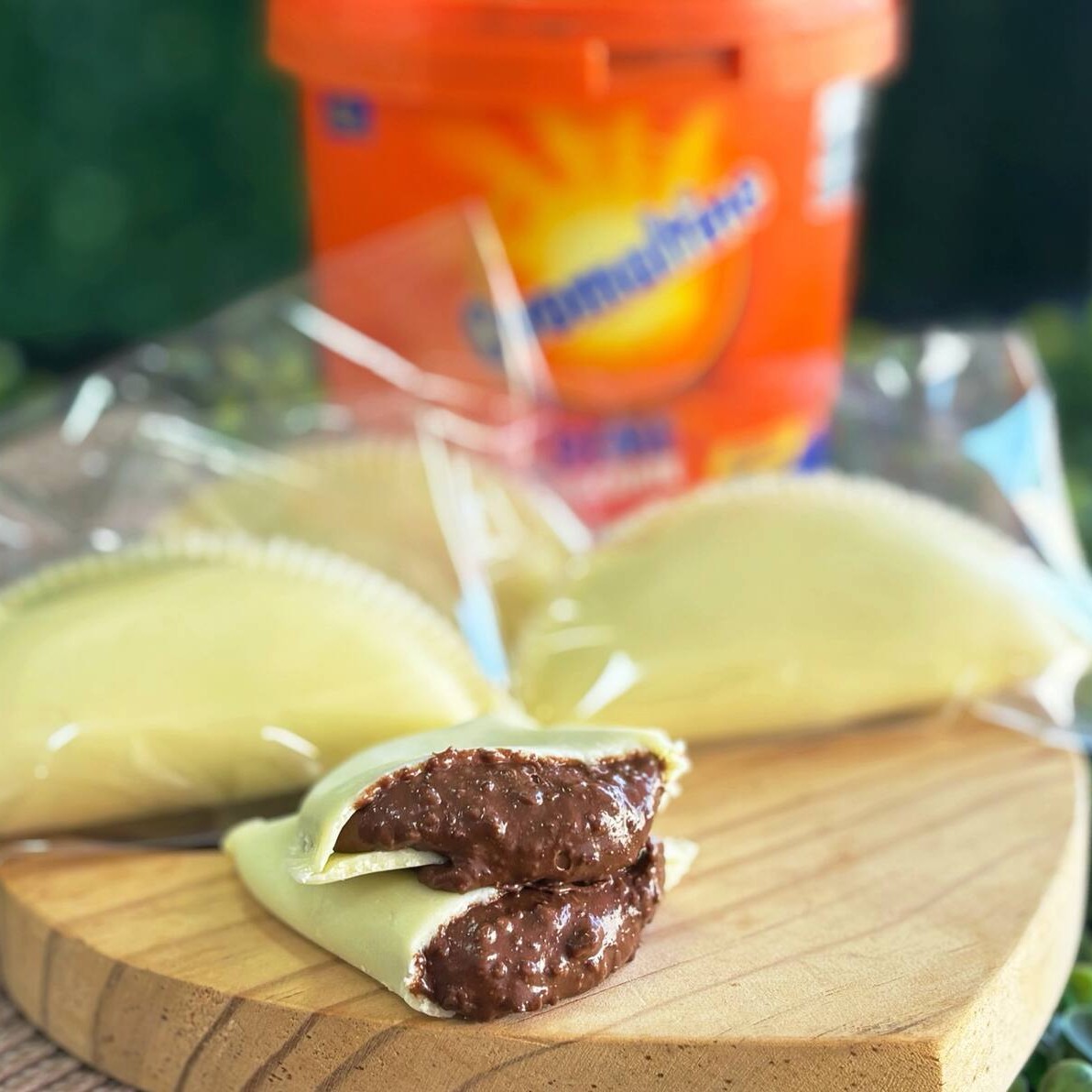 Casquinha de sorvete banhada no chocolate branco, recheado com brigadeiro cremoso de Ninho e Nutella pura. A loja não altera, adiciona ou retira ingredientes de nenhum produto. Produto artesanal, de consumo imediato.
