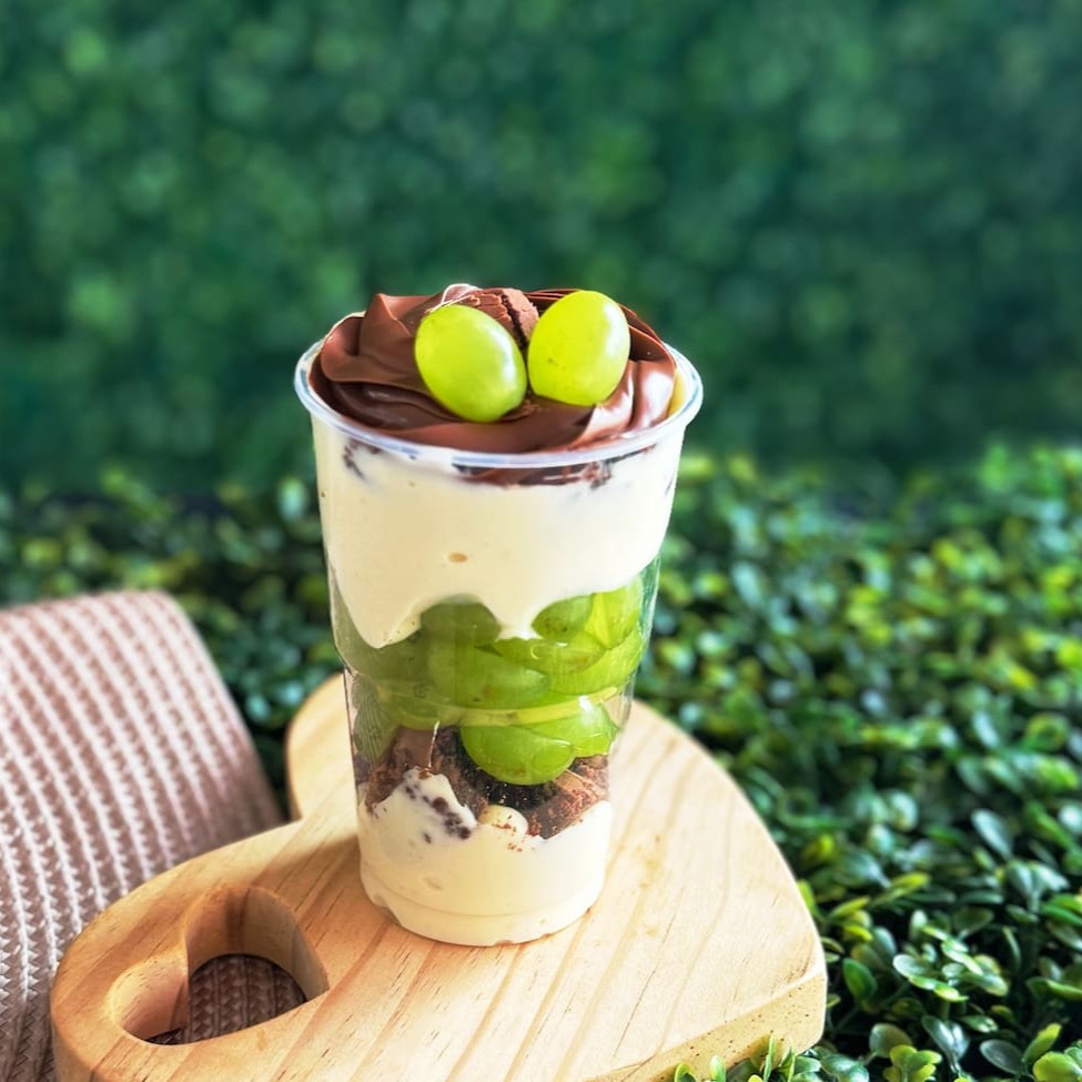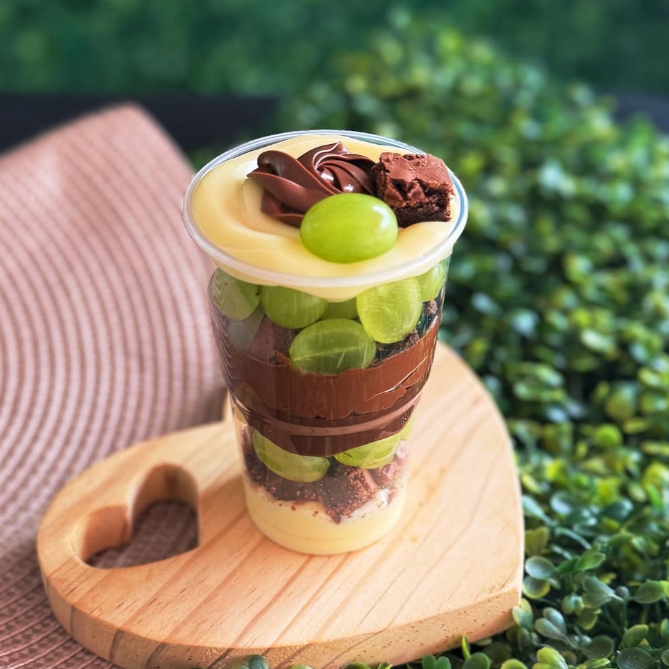 Brownie, brigadeiro de Ninho, uvas verdes sem semente, brigadeiro cremoso ao leite e Nutella. A loja não altera, adiciona ou retira ingredientes de nenhum produto. Produto artesanal, de consumo imediato.