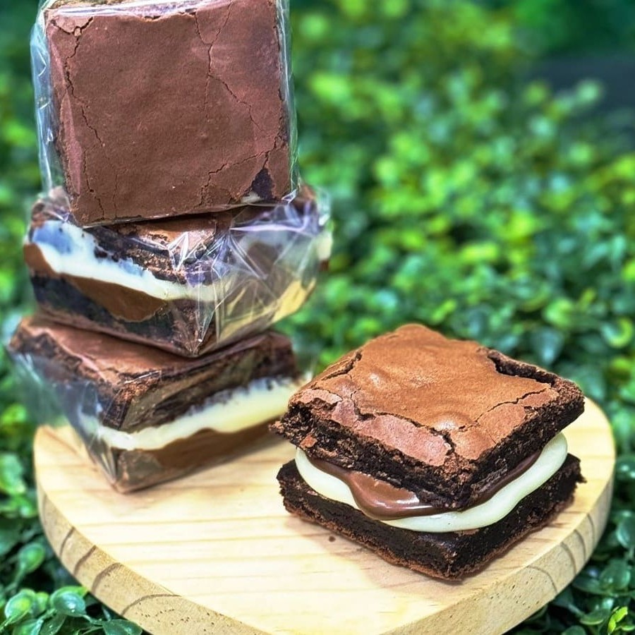 Brownie, brigadeiro de Ninho, brigadeiro cremoso ao leite, Nutella e Kinder bueno. A loja não altera, adiciona ou retira ingredientes de nenhum produto. Produto artesanal, de consumo imediato.