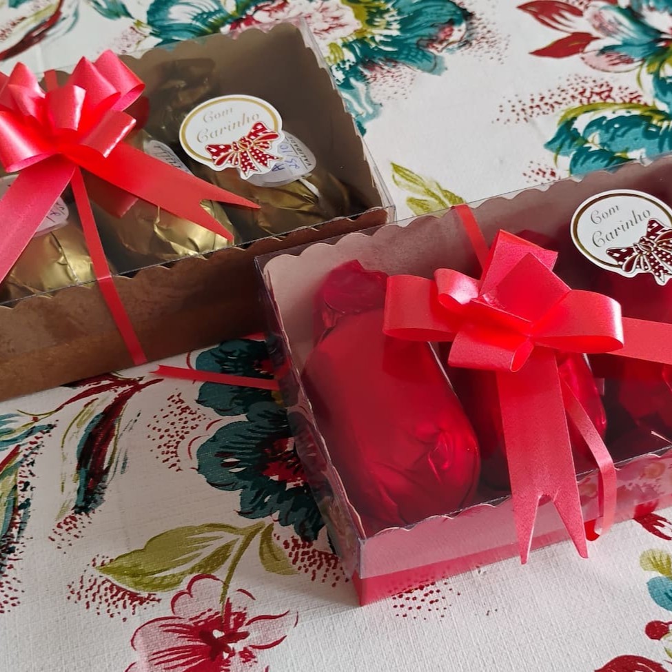 Linda caixa presenteável com 3 trufões à escolha, embalada carinhosamente e pronta pra adoçar com carinho o Dia de uma pessoa especial!