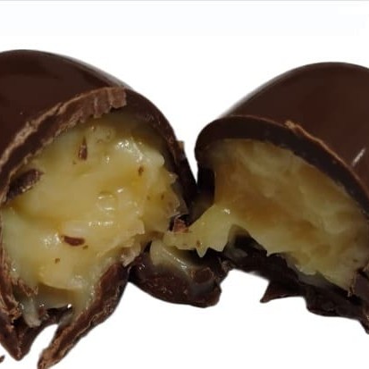 Um delicioso trufão feito com chocolate 100% ao leite de linha premium, junto a um delicioso creme de brigadeiro branco gourmet e geléia da fruta natural. Imperdível! ***Nossos trufões têm o tamanho de 2 trufas tradicionais e são generosamente recheados***
