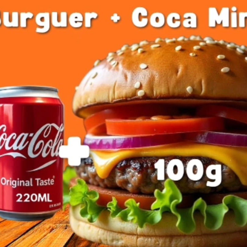Pao,alface, tomate, cebola, hamburguer artesanal costela 100g, queijo cheddar mais 1 coca mini 220ml.