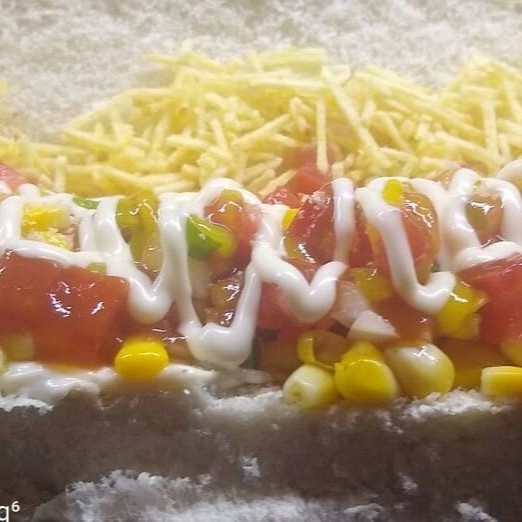 Pão,1 salsicha, milho, maionese, tomate e cebola, farofa, batata palha, bacon em cubos ,calabresa fatiada, cheddar ou Catupiry.