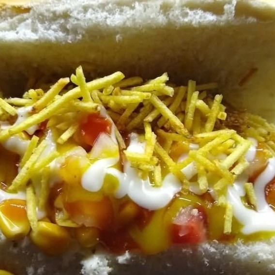 Pão, 2 salsichas, maionese , tomate ,cebola, milho, farofa, batata palha, frango desfiado, bacon em cubos, calabresa fatiada, cheddar ou Catupiry.