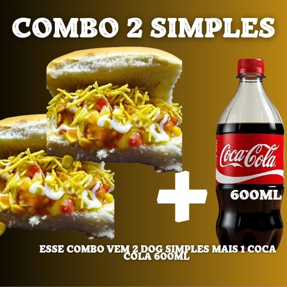 0010- Combo 2 Hot Dog Simples Pão Médio + 1 Coca - Cola 600 Ml