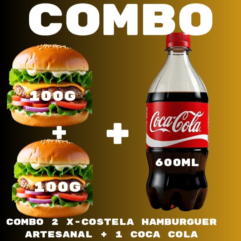 Comb 2 Burguers 100g X- Costela + 1 Coca - Cola 600ml