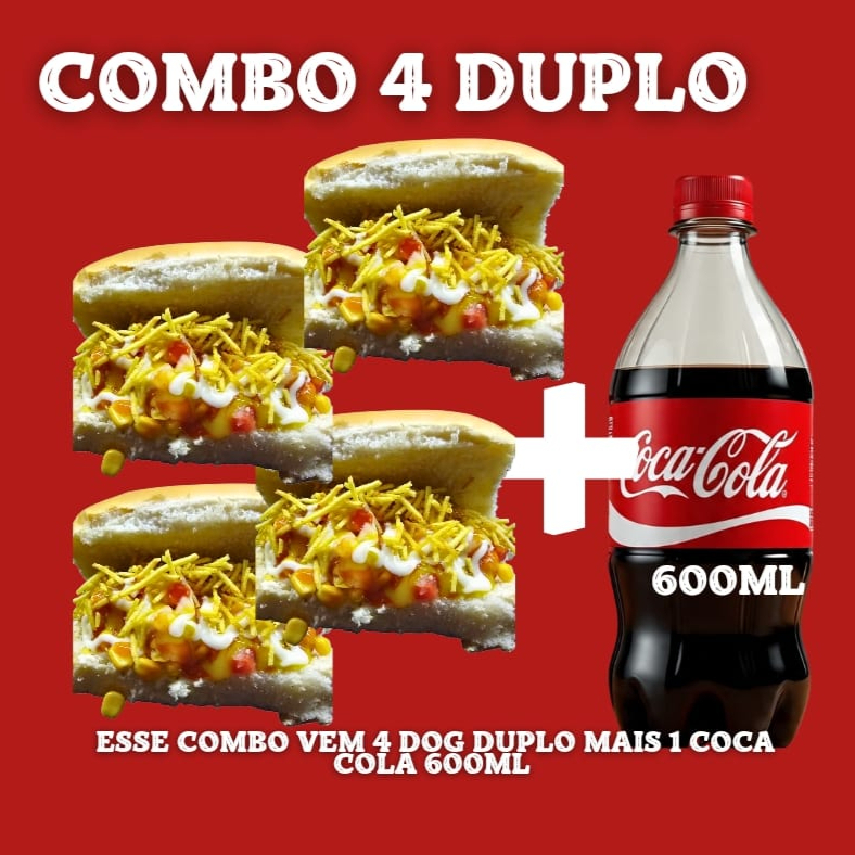 005-combo 4 Hot Dog Duplo Pão Médio + 1 Refrigerante 600 Ml