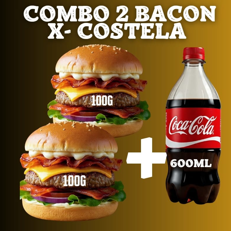 Combo 2 Burguer Bacon 100g X- Costela + 1 Coca Cola Original 600ml