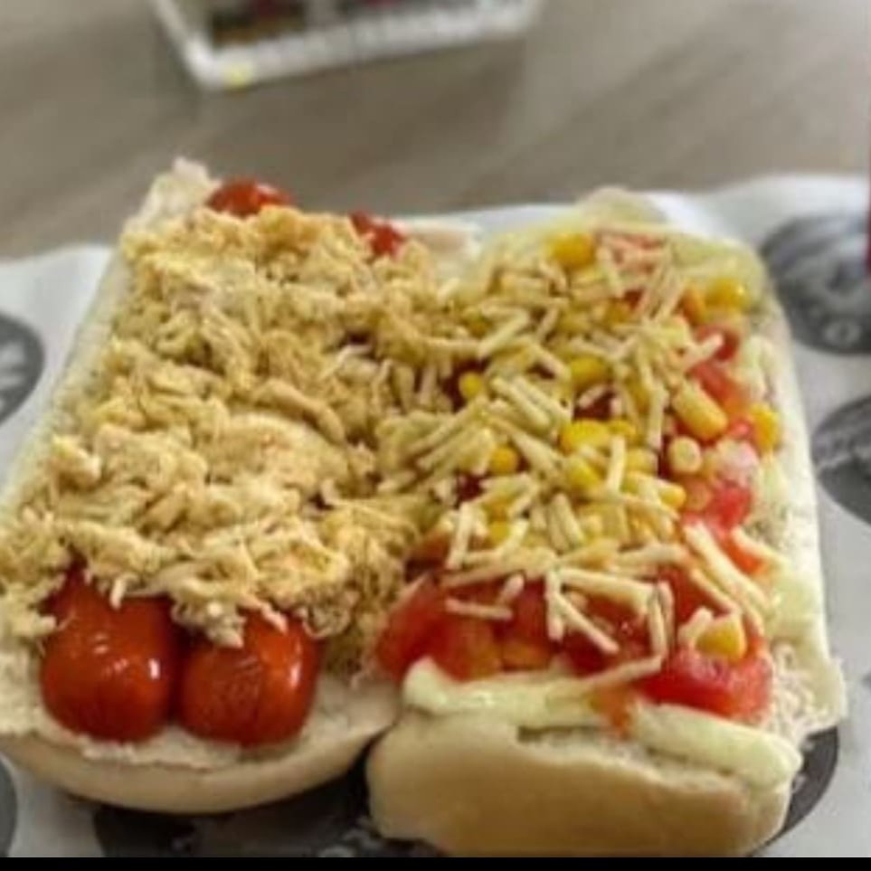 Pão, vina, frango, bacon, Catupiry ou cheddar, tomate, milho, batata palha e maionese.